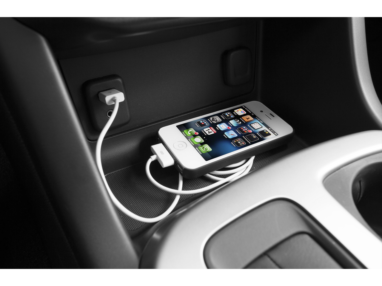 - Audio system feature, USB port, located inside center console